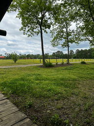 We practice in the pavillion between the creek and the pasture